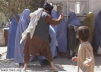 "Los hombres tienen autoridad sobre las mujeres en virtud de la preferencia que Alá ha dado a los hombres sobre las mujeres y de los bienes que gastan. Las mujeres virtuosas son devotas y cuidan, en ausencia de sus maridos, de lo que Alá manda que cuiden. ¡Amonésten a aquéllas de quienes tengan temor que puedan rebelárseles, déjenlas solas en el lecho, y péguenles! Si les obedecen, no se metan más con ellas. Alá es excelso, grande." (4:34).